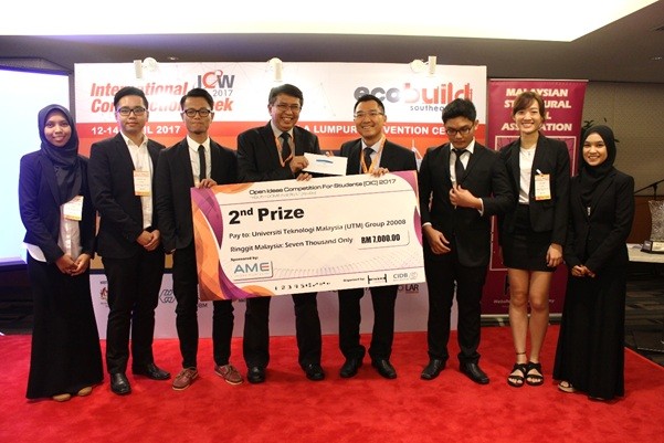 In order to commemorate the success of the event, the Prize Award Ceremony was held on 13 April 2017 at Kuala Lumpur Convention Centre, officiated by YBhg Dato’ Sri Ir Roslan bin Md Taha as the MSSA President, and attended by Prof Dr. Azlan Adnan as the Chairman of the OIC Committee, Dato’ Ir Ahmad Asri bin Abdul Hamid as the Chief Executive of CIDB, deans of the participating universities’ architectural and engineering departments, members of the Education Committee of MSSA, judges, supervisors of the OIC, as well as undergraduate participants of the competition. In his welcoming speech, the MSSA President acknowledged the diligent effort and tireless hard work portrayed by the participating teams, exclaiming immense confidence in the hopes that the great stake of the industry lies within their grasp. The highest of gratitude were also given to the sponsors of the competition, including to CIDB Malaysia, AME Engineering Industries Sdn. Bhd., Bina Puri Holdings Bhd., Ann Yak Siong Hardware Sdn. Bhd., as well as Siam Yamato Steel Co. Ltd. without which the competition would not have been successful.