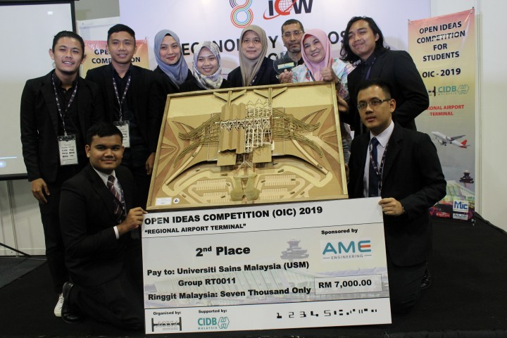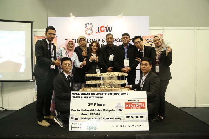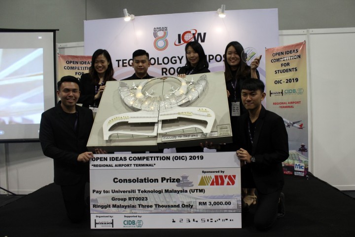 As expected, anticipation ran high in the hall and not a seat was dry as the contending students as well as those in attendance bated their breaths before the results were announced. The hall erupted into cheers of victory as Team RT 0048 from Universiti Teknologi Malaysia (“UTM”) was crowned the highly sought-after title of the 12th champion of the OIC 2019. Taking inspiration from the traditional Malay cultural identity by using vernacular architecture representing a traditional house, the winning team’s reimagined Senai Airport terminal structure made people ponder upon the rhetorical question of what the future of the past will be. The dynamic team consisting of humble and amicable students shone in their daring decision to keep their design fairly simple yet aesthetically pleasing and somewhat feasible in terms of cost-effectiveness by employing repeated triangular-like structures of the steel roofs. In terms of functionality in its bid to be more environmentally friendly, the team made sure to include interactive first and second floors, with its steel-supported triangular roof-cum-wall structure designed to emit natural daylight. Apart from making the most out of natural daylight, the structure also sandwiches layers of ACP (aluminum composite panels) in order for the structure to bear minimal weight, and thus, sustain the land in which the structure is based at. Indeed, bringing home the winning prize of RM10, 000 courtesy of CIDB Malaysia, this “home-away-from-home” concept proved to have played to their advantage in this competition, especially since the team strongly preached the importance of preserving the beautiful Malaysian culture as a way to move forwards into the future.